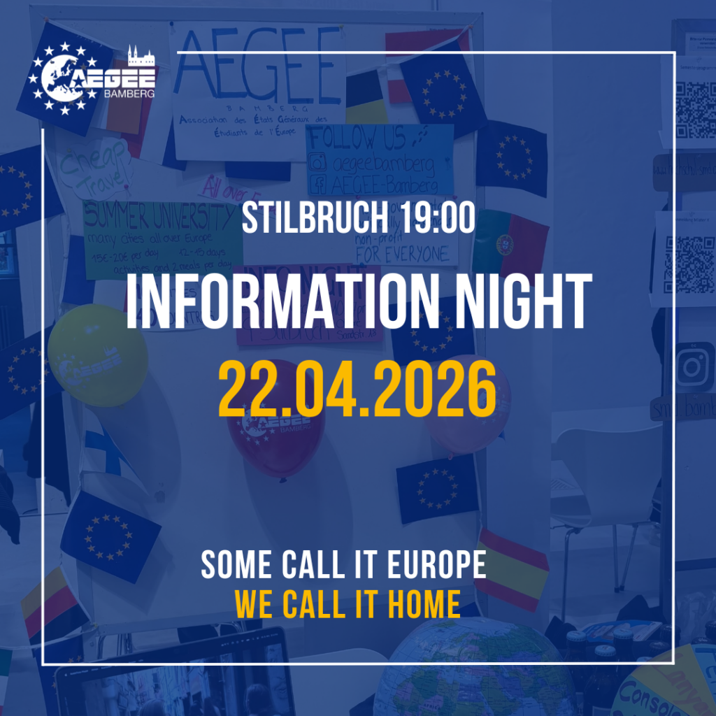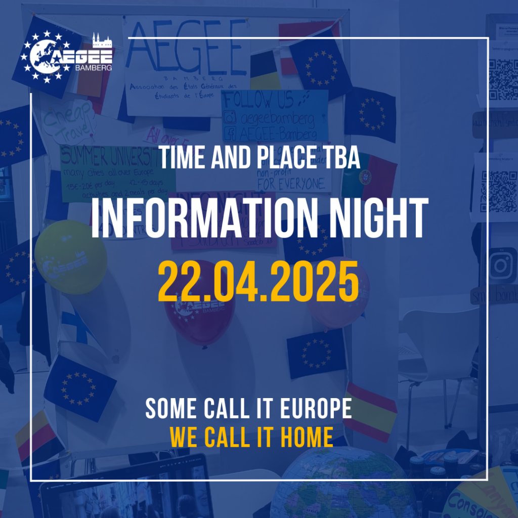 Are you interested in AEGEE Bamberg and want to learn more about us? Would you like to meet our members and discover the events we have planned for this semester? Then come and join our information night!